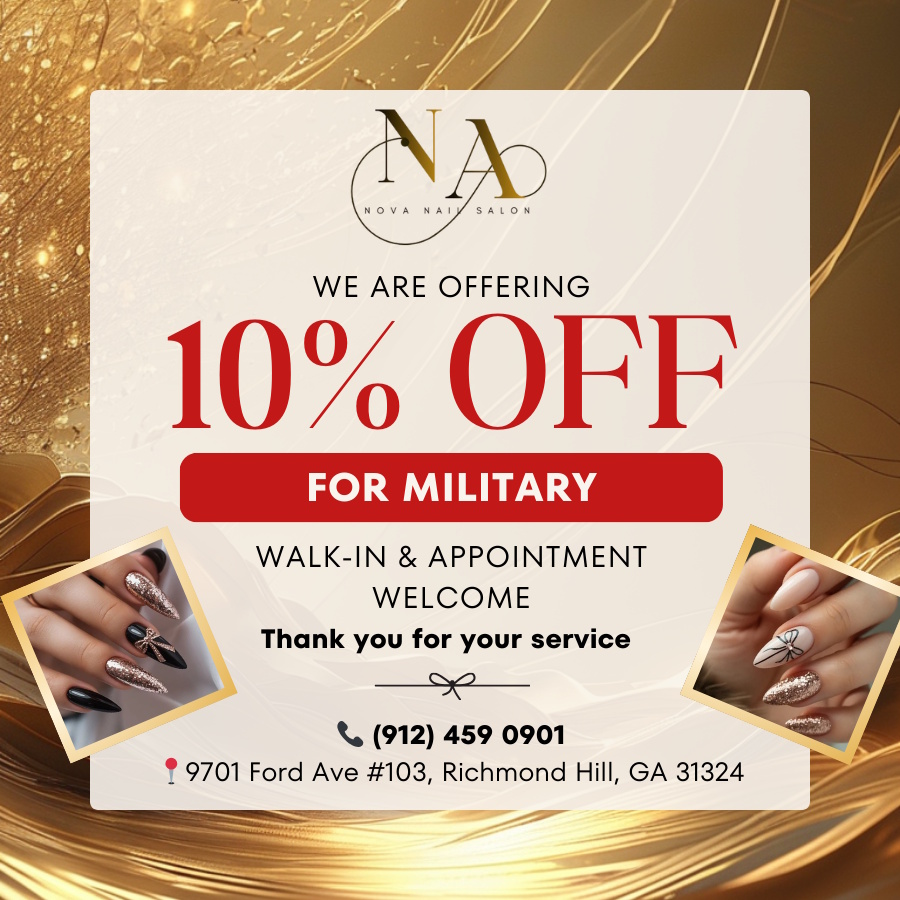 Come to our nail salon and enjoy the comfortable relaxing moments at Nova Nails And Spa located conveniently in Richmond Hill, GA 31324.